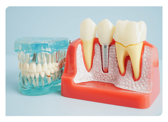 Diş implantları eksik olan dişlerin fonksiyon ve estetiğini sağlamak amacıyla çene kemiğine yerleştirilen vida şeklinde titanyumdan yapılmış doku ile uyumlu yapay kökler olarak tanımlanabilir. İmplantlar geleneksel kuron köprü protezlerine ve hareketli protezlere göre daha iyi bir konuşma, çiğneme fonksiyonu sağlarken estetik olarak doğal bir görünüm kazandırırlar.